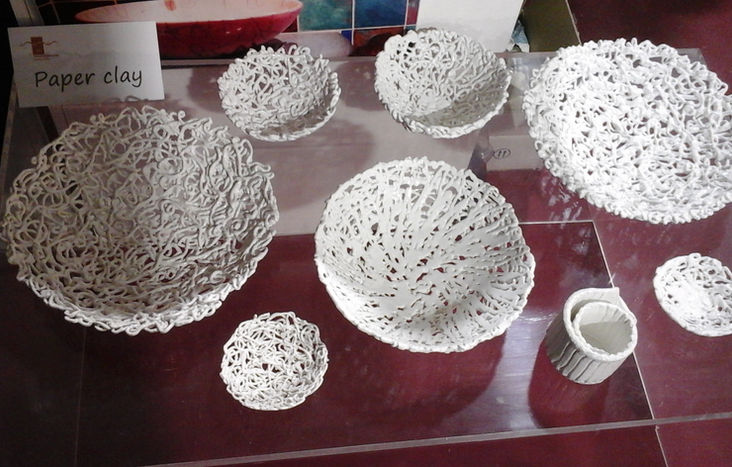 Vasi e ciotole in paper clay decorati a terzo fuoco con oro e platino